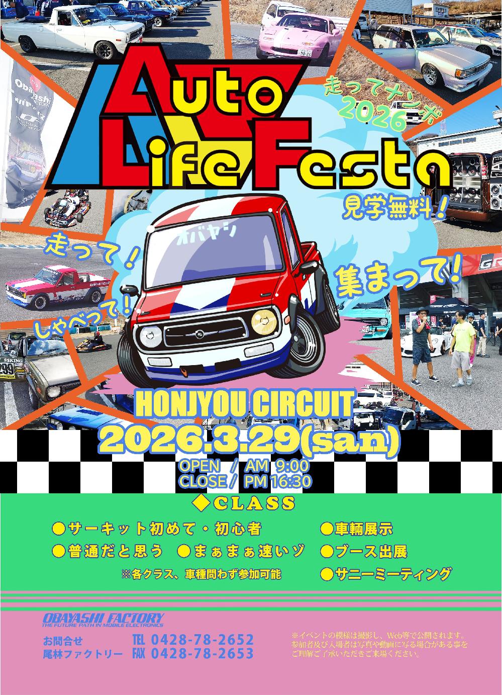 2023/12/26 【Auto Life Festa2024開催のお知らせ】2024年3月10日(日)に本庄サーキットにてAuto Life Festa2024が開催予定です!詳しくは弊社までお問い合わせください。